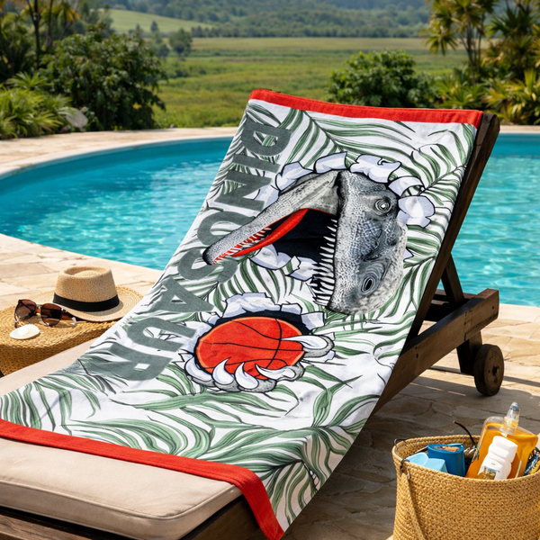 Transforme os momentos de praia e piscina em uma verdadeira aventura com a Toalha de Praia Teka Dinossauro!