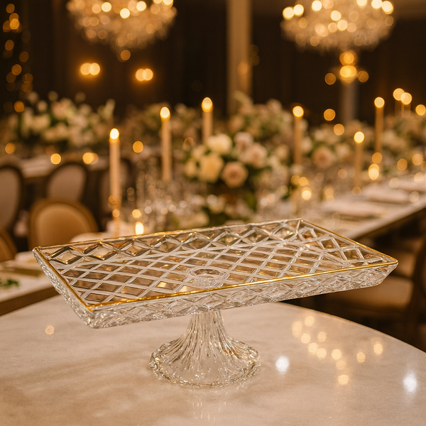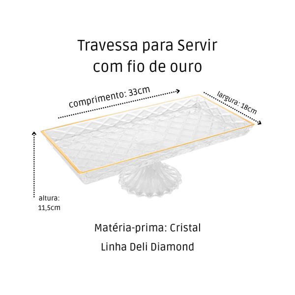- Design Elegante: Esta travessa apresenta um sofisticado pé de cristal de chumbo e um elegante fio de ouro, que adicionam um toque de glamour e requinte à sua mesa.